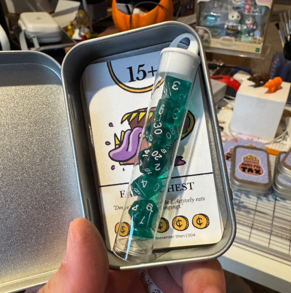 Step into the role of a daring tax collector tasked with an unusual job: collecting taxes from the eccentric and sometimes terrifying monsters of the dungeon! In And My Tax, you’ll roll a variety of dice to meet the quirky demands of each monster. Strategize your rolls, manage your dice wisely, and decide when to push your luck or cut your losses. With every successful collection, you’ll earn coins—but beware, the monsters won’t make it easy, and your dice won’t last forever. Perfect for quick, thrilling gameplay with endless replayability, And My Tax is a lighthearted, dice-rolling adventure that’s monstrously fun for all!